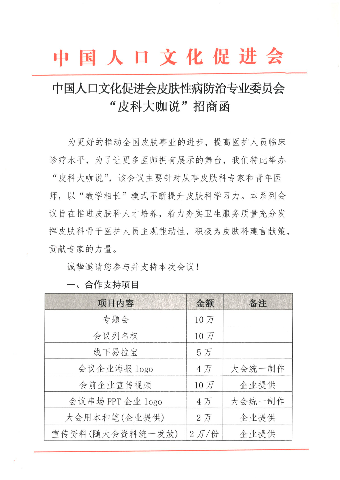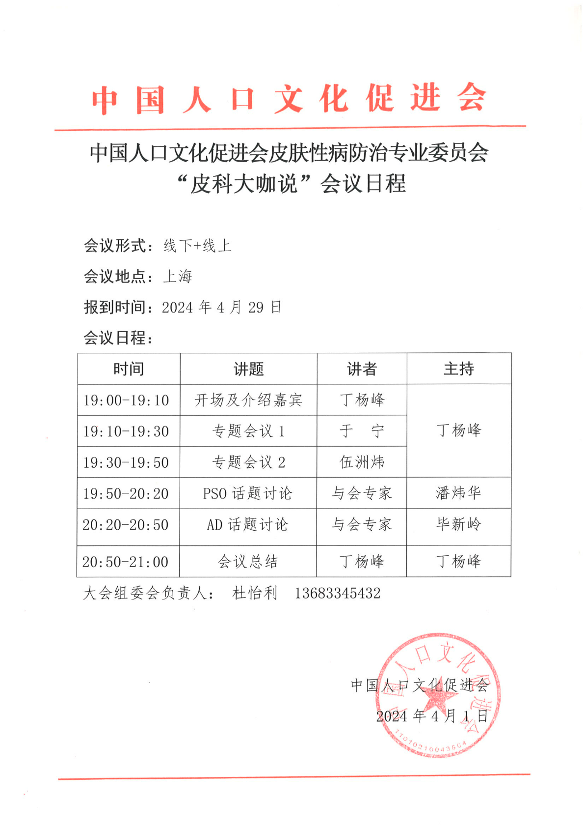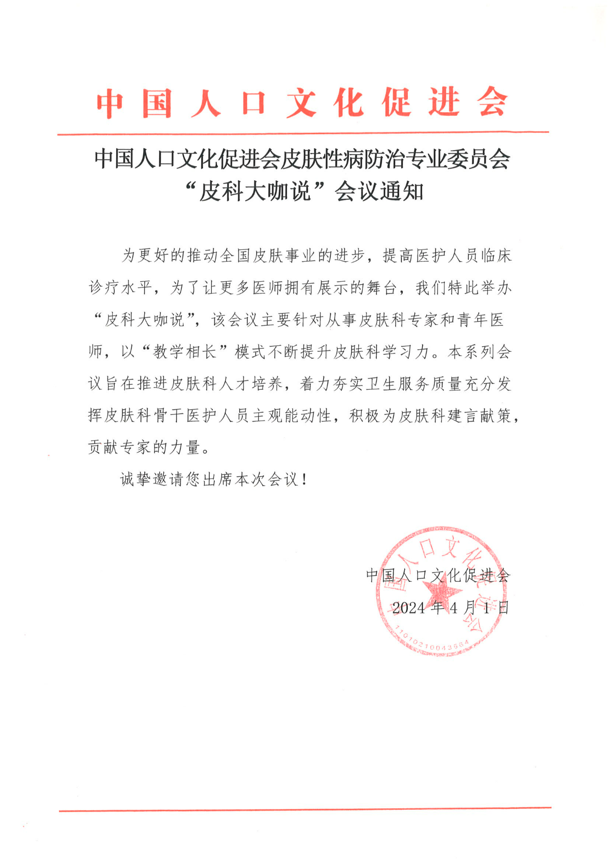 中国人口文化促进会皮肤性病防治专业委员会“皮科大咖说”会议通知